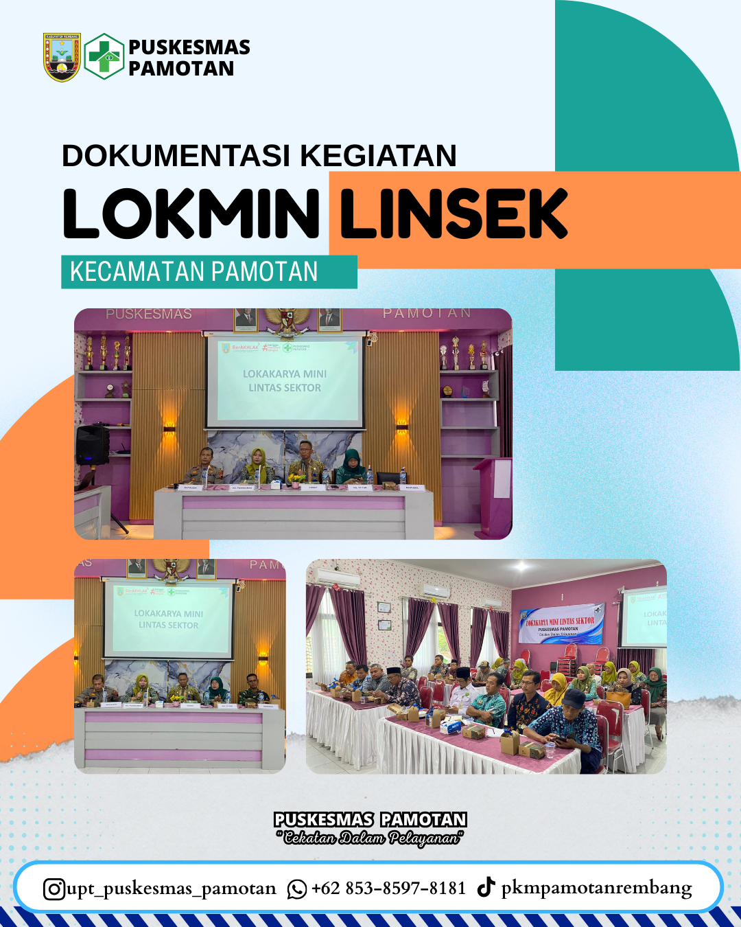 Puskesmas Pamotan menyelenggarakan kegiatan Lokakarya Mini Lintas Sektor pada Selasa, 13 Januari 2026, bertempat di Aula Puskesmas Pamotan. Kegiatan ini diikuti oleh Camat Pamotan, Kepala Puskesmas Pamotan, Kapolsek Pamotan, Danramil Pamotan, Ketua TP PKK Kec. Pamotan, Koorwil Biddikcam Pamotan, KUA Pamotan, PLKB Pamotan, Kasi PM Kec. Pamotan, Koord. Pendamping Desa dan Kepala Desa di wilayah Kec. Pamotan sebagai bagian dari agenda rutin pemantauan, evaluasi kinerja, koordinasi lintas sektor, serta penyusunan rencana kerja guna meningkatkan mutu pelayanan kepada masyarakat.
